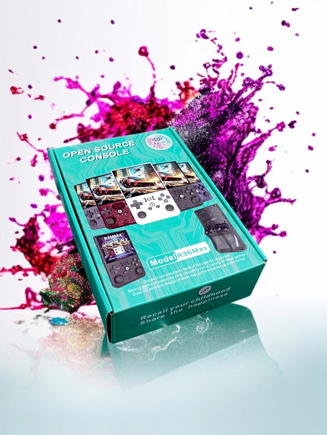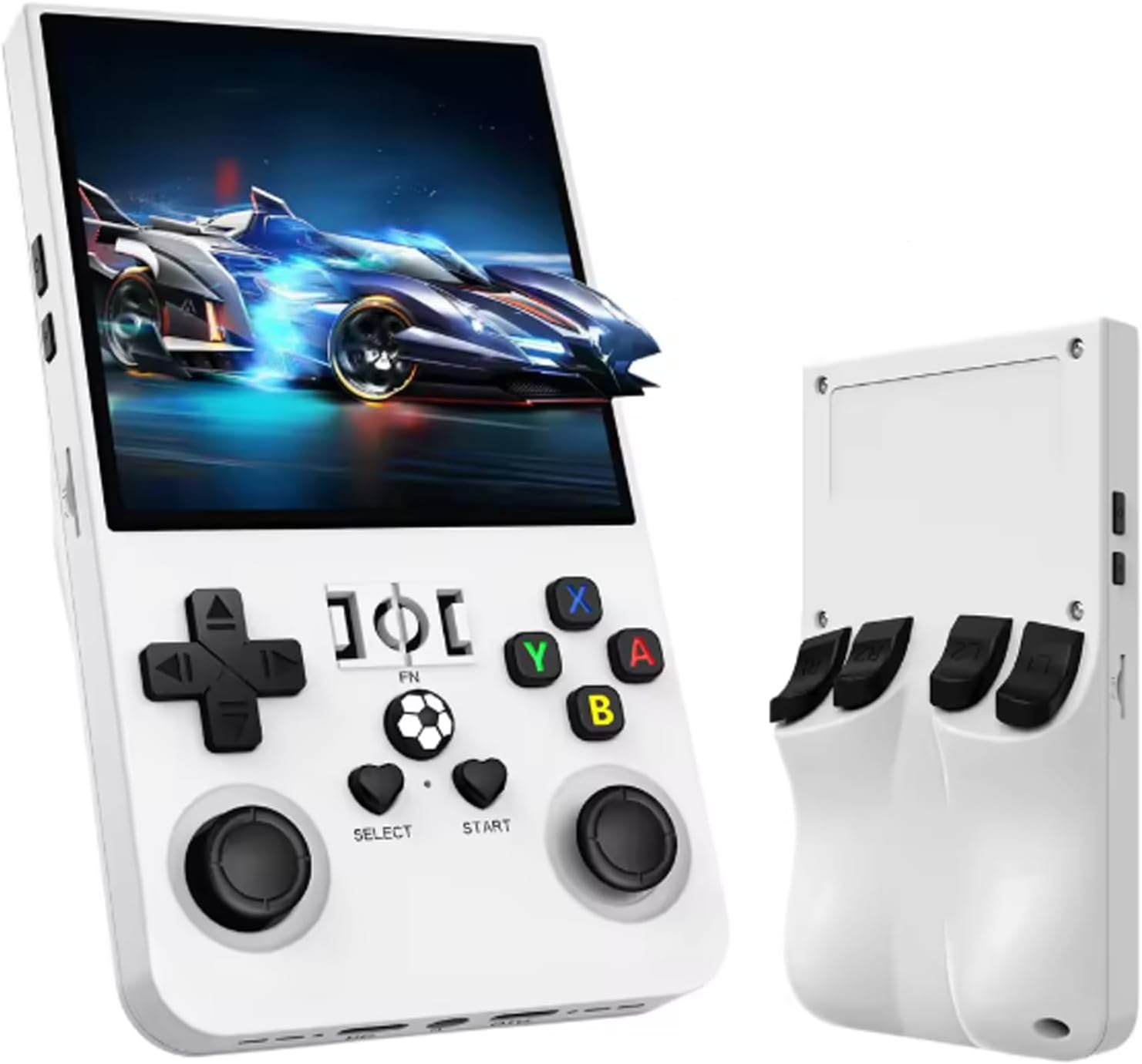 📦 Incluye consola R36 MAX blanca, funda de regalo, cable USB-C y tarjeta SD cargada.