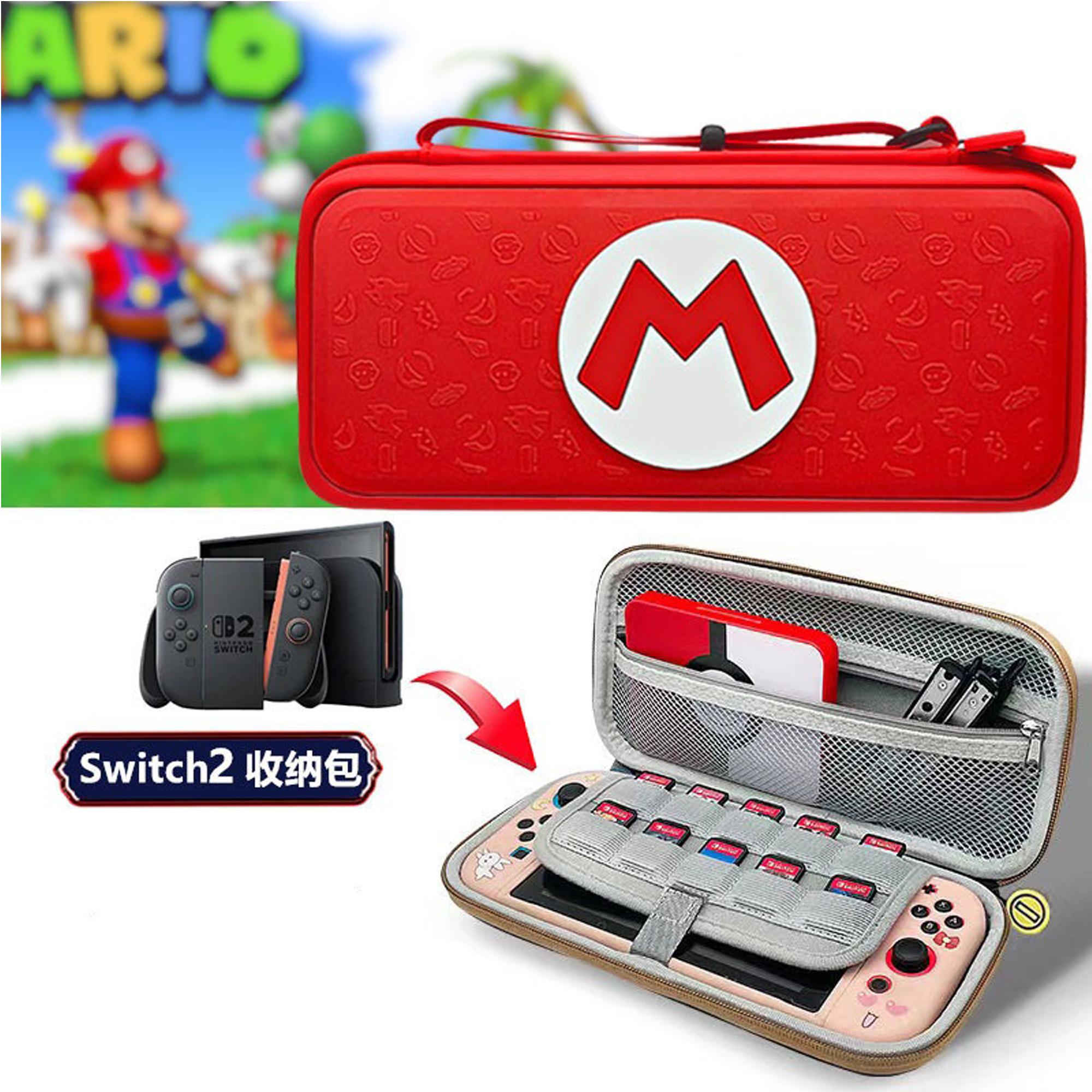 Organización perfecta: compartimentos diseñados con maestría para tu Nintendo Switch 2, tarjetas de juego y accesorios, manteniendo cada pieza segura en su lugar.